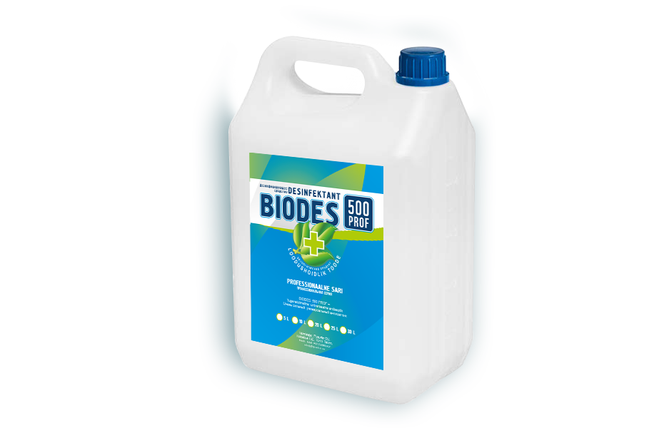 BIODES 500 PROF has bactericidal, tuberculocidal, virucidal and fungicidal properties. It is effective against viruses and fungi in a concentration of 250 ± 50 mg/dm3.